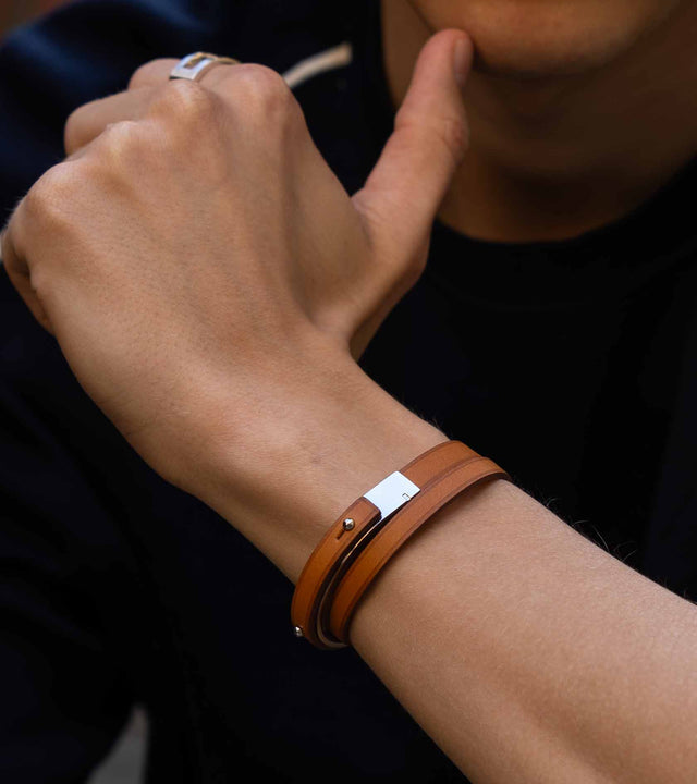 Notre collection de bracelets cuir homme est en cuir et métal. Alliance d'un design contemporain et d'un savoir-faire artisanal d'exception parisien, nos bracelets cuirs se démarquent par la pureté de leurs lignes et le soucis du détail. Des bracelets au design à la fois chic et intemporel. Ils sont réalisés dans de beaux cuirs selliers tannés à base de végétaux qui se patinent merveilleusement avec le temps.
